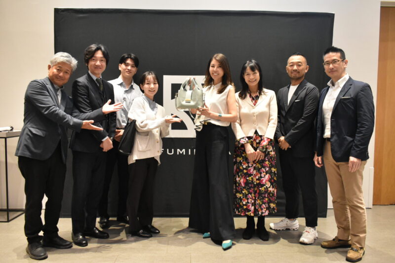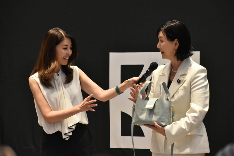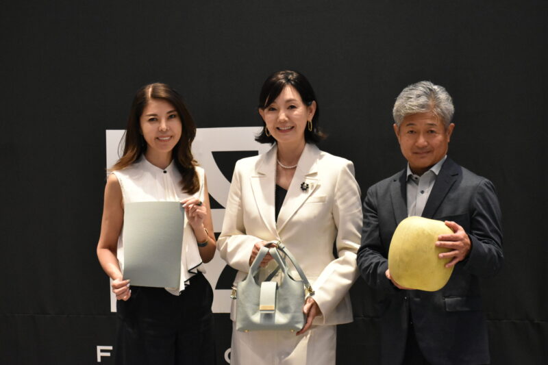 また、発表会には、長年FUMIKODAの愛用者でもある女優のとよた真帆さんも駆けつけ、新作バッグを手にしていました。とよたさんは、「限りなく革に近い上質感なのに、硬すぎず柔らかすぎず、使い心地がとてもいいですね。こうした素材を使うブランドが増えたら、私たちの日常(購買)が、そのまま貢献になります」とコメントしていました。
