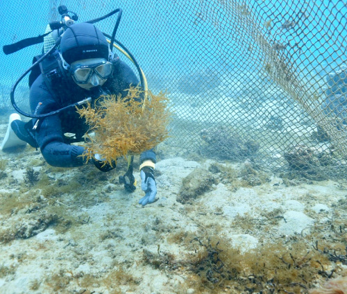 日本各地で起きている「磯焼け」と呼ばれる現象によって、岩礁域の藻場が消失しており、それによって浅海域の生態系が支えられていることが問題視されています。この問題を解決するために、「藻場再生プロジェクト」が実施され、海藻の育成や移植によって藻場を復活させるモデルが試行されています。このプロジェクトは奄美大島瀬戸内町で行われており、海中の生物に隠れ場所や産卵場所を提供し、水の浄化や海中に酸素を供給することで、近海の藻場を復活させることを目指しています。
